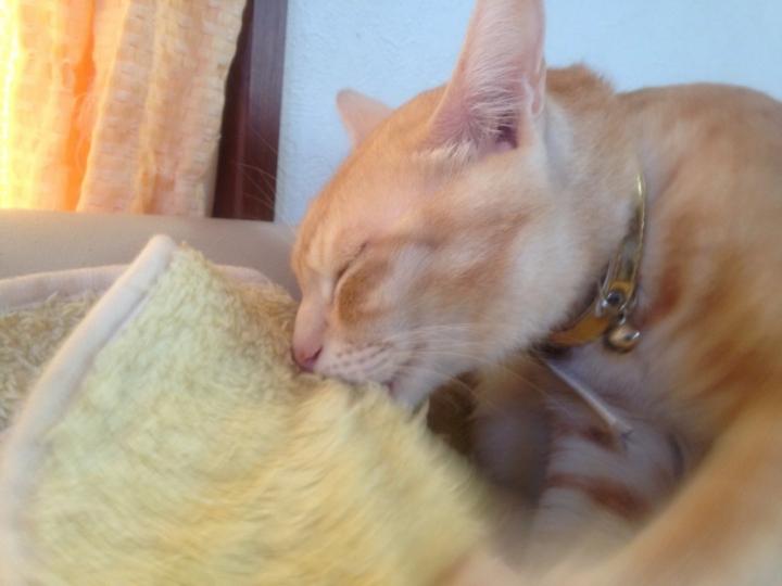 朝晩寒くなったので毛布出したら、早速ハンちゃんが