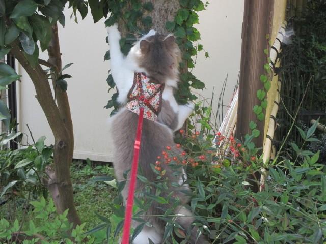 「あ~ん見たい、見たい。木に登れば見えるかしら~。うんしょ!」(=^・^=)
