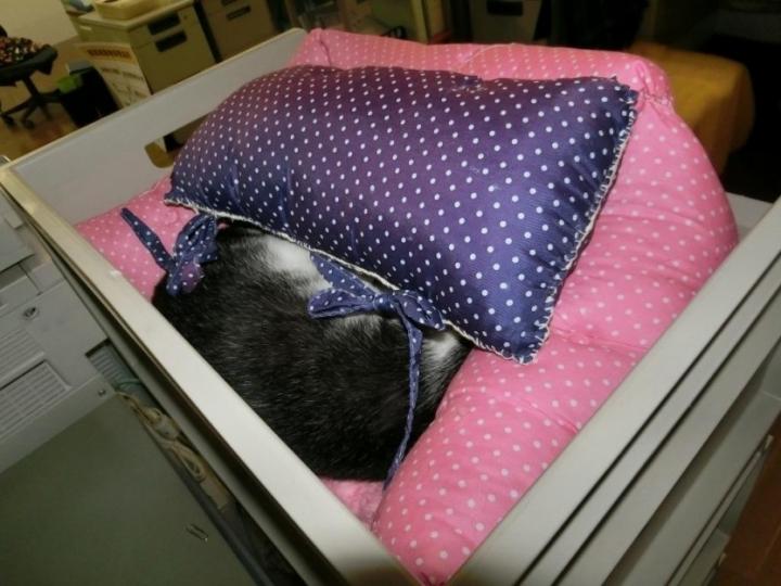 そんな下僕用ひざ掛けも、勉強しないときは布団の上に乗せ、その上にべーさんが乗って寝るから実質すべてにゃんこのためのブツです。