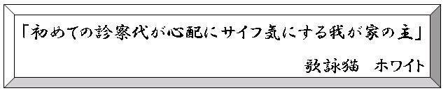 だからね心配になったんだよ。動物病院なんて今まで全く縁が無かったからね。それに動物病院は高い高いって聞いていたもんだからどれ程高いかってね。全く見当が付かなくてね。