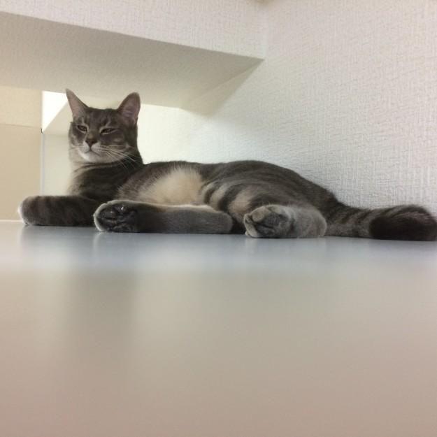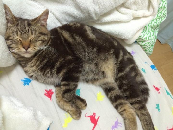 ベッドのど真ん中を占拠し、いい夢見てる模様。