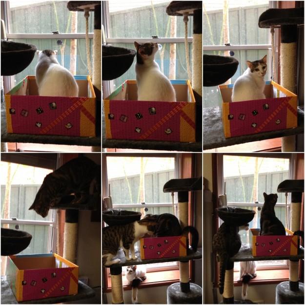 (あたちの箱にゃのに・・・)な様子のAmiちゃんです。