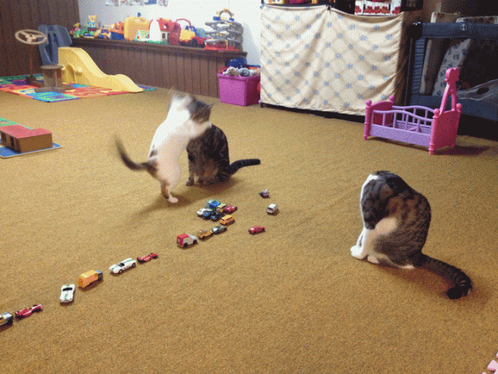 Amiちゃん、今朝も Euron兄さんに飛び掛りました。