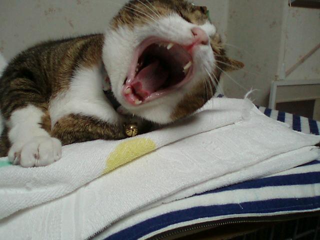 ちょっと可哀想な歯です。そんなことお構いなしにあくびしてます。