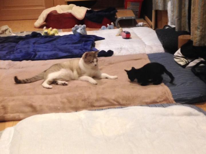 カールを見る眼差しが優しい。これはビックリ。甘えん坊のガロちゃんが一番最初に