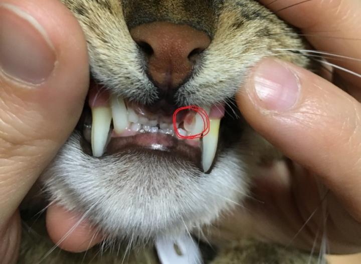 病院へ行く前日の歯の画像(赤マル部分)