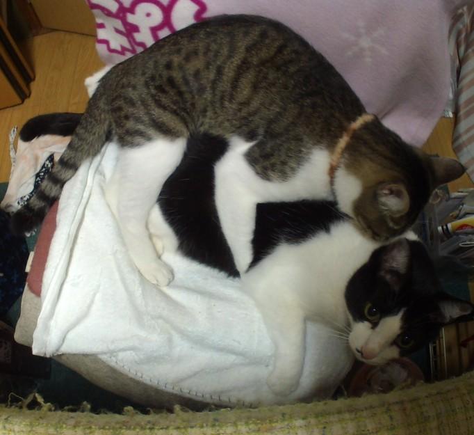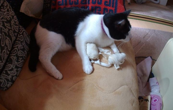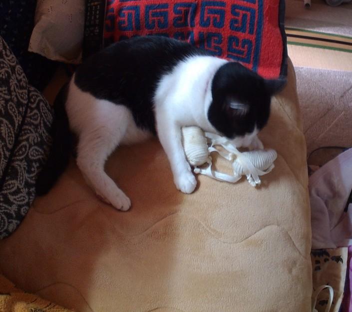 お母ちゃんのベッドに潜っていたハチ君も、今度はお茶の間の、お母ちゃんの椅子の上へ。
