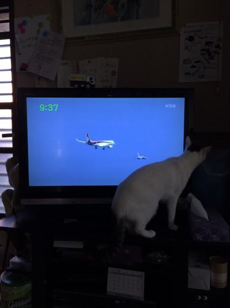 今朝は、国産初のジェット機が初飛行したニュースに、白のココアさんが釘付けでした。
