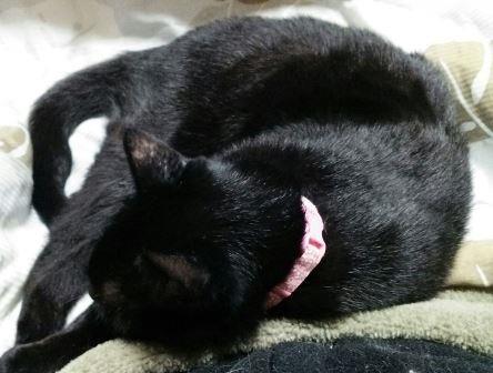 膝で居眠り。私が下手なせいもありますが、黒猫って何がどうなってるのか、画像じゃわかりにくいですね。