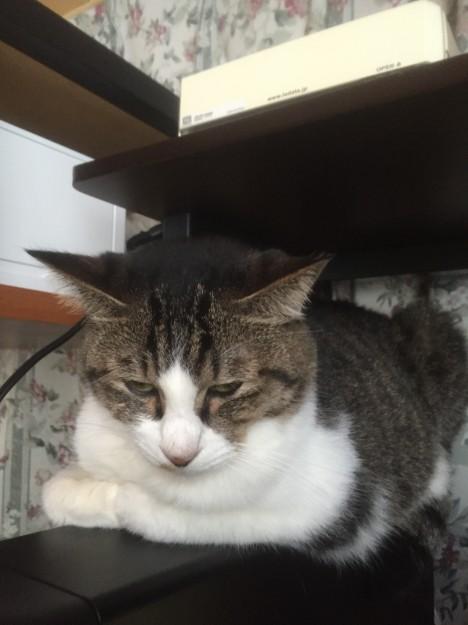 今日は定位置、PCの上^^寝落ち寸前で目つきが悪いね。