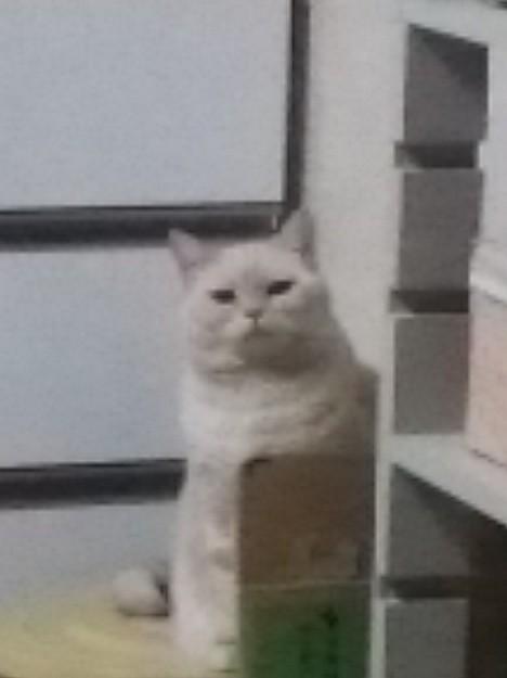 お茶入れの段ボールを間に立てかけたのに、猫には無意味の抵抗でした(-_-;)