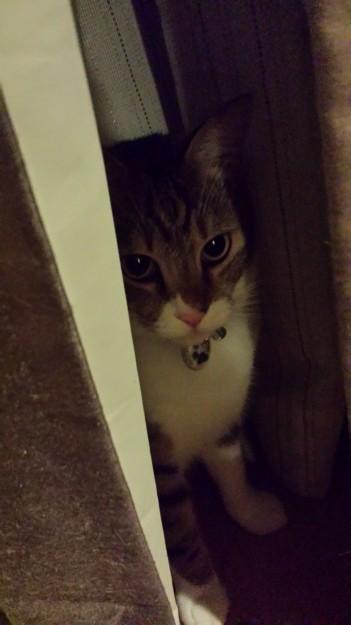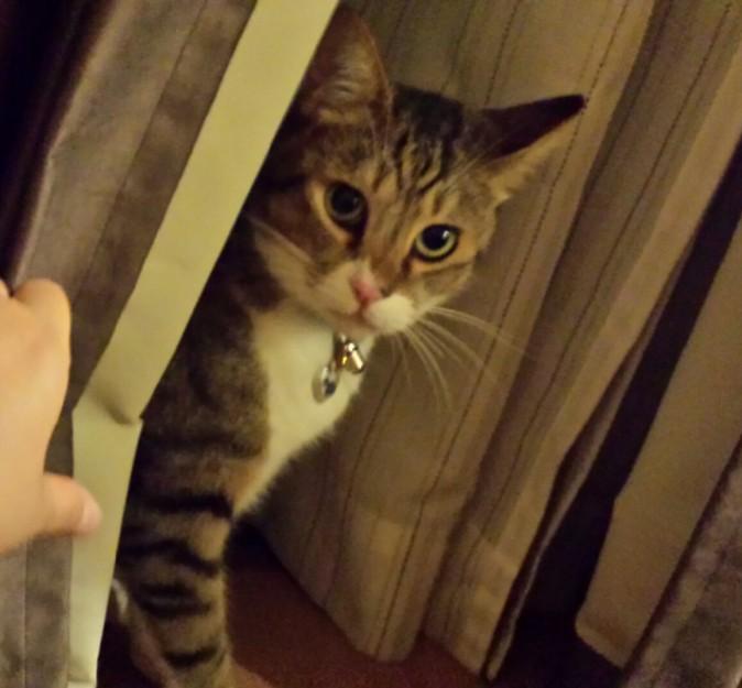 寝室に行ったら、ふてくされてるのかカーテンの向こうに隠れるサクちゃん↓↓↓