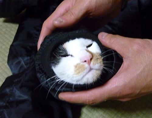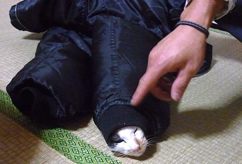 うちのネコはジャンパーの袖に入るのがお気に入りみたいです。