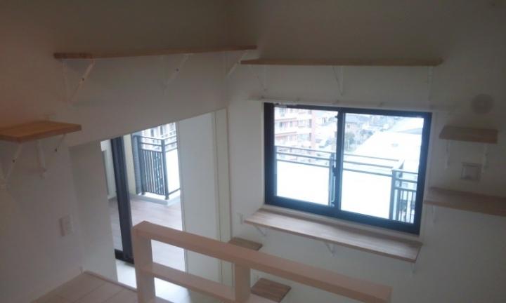 キャットウォークからも階段からもロフトに上がれて一周できる感じにしました。