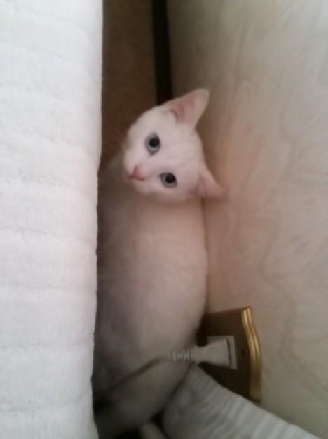 そして、新入りのシロちゃん。メス。血液検査等、まだなので、ブチ男とは完全隔離中。