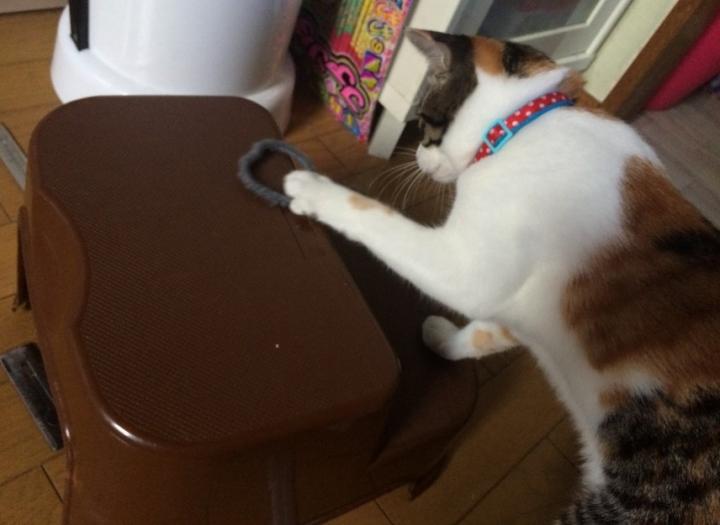 こんな感じで、咥えて足台の所へ持って行き、1人遊びして盛り上がっています♫