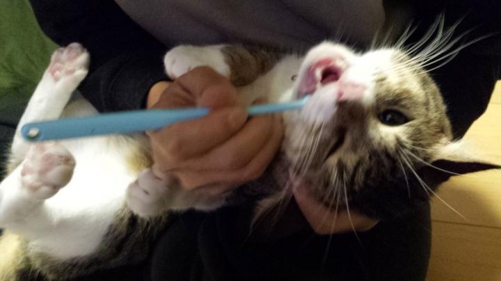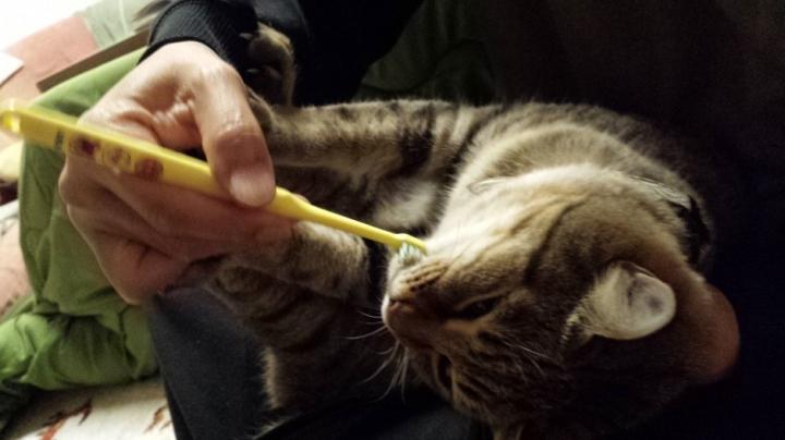 やっぱり歯周病予防とニャンズの慣れのためには、こまめにやらなきゃダメてすよね~Σ(´∀`;)