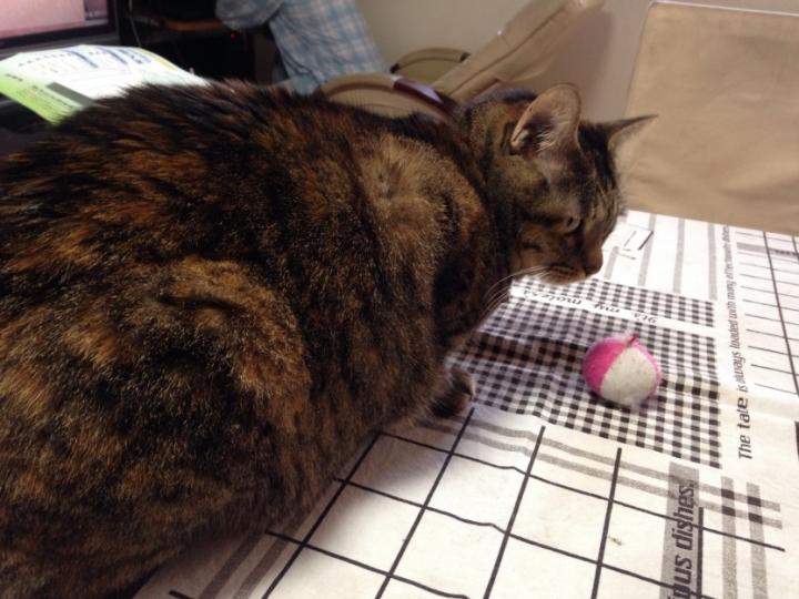 私の目の前に お気に入りのボールを持ってきてチラ見
