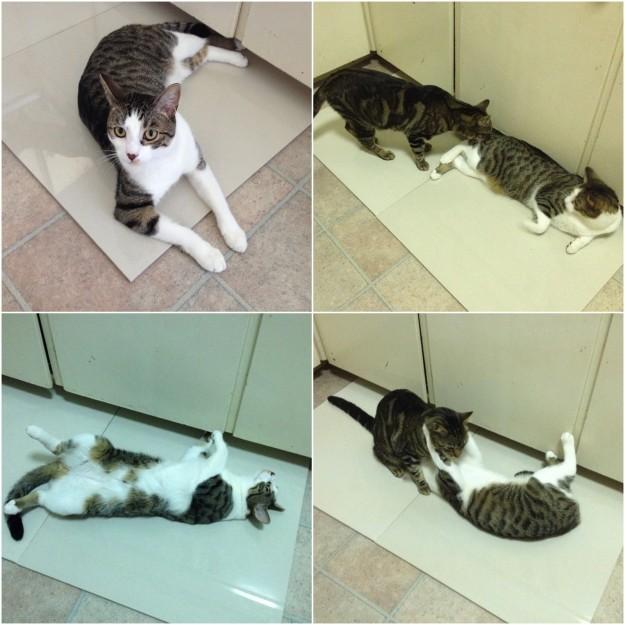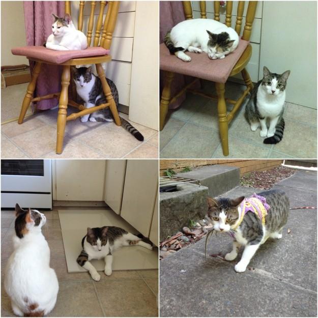 今日も暑いのに 昼食後の外出を諦めないにゃんず。