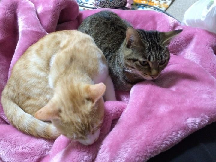 だいぶ仲良くなり、アジはグルーミングもぺろっぺろしてます。