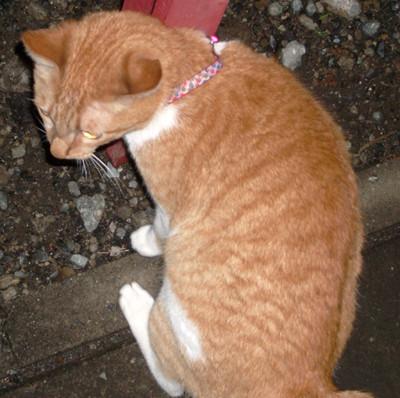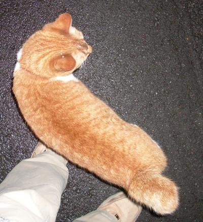 ミントさんは、決して遠くまでは付いてきません。この子は、1歳くらいの時、私に付いて来て帰る道が分からなくなり、2日ほど帰ってこない事があったのです。このとき諦めかけていたのですが、自力で帰ってきて鳴きながらご飯を食べていた事があったのです。