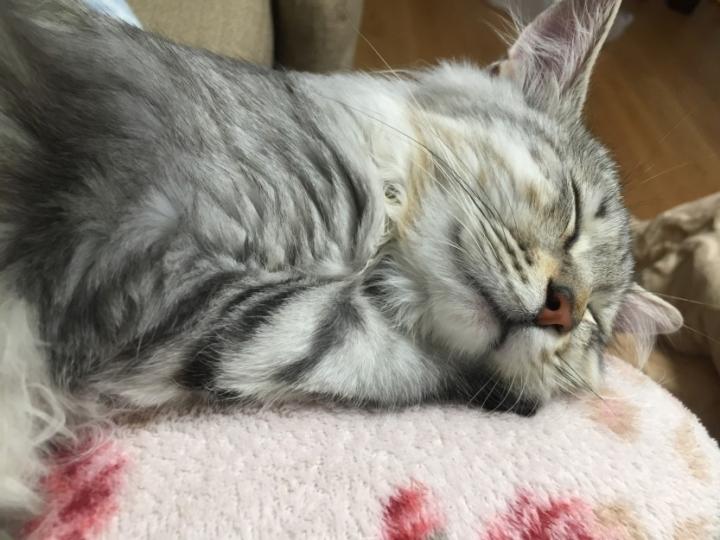 私の膝でアホズラで寝てる(笑´・艸・)