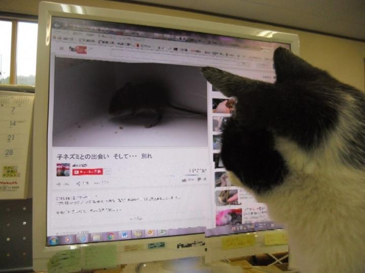 休憩時間はネズミを(画面上で)追いかけてみたり。