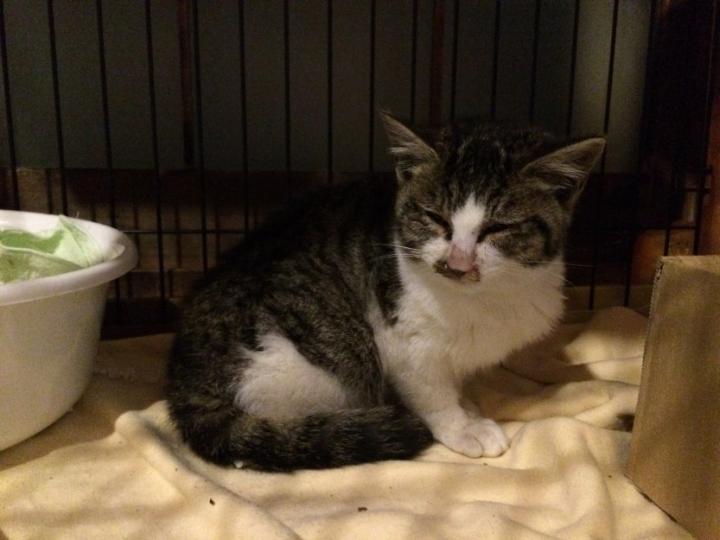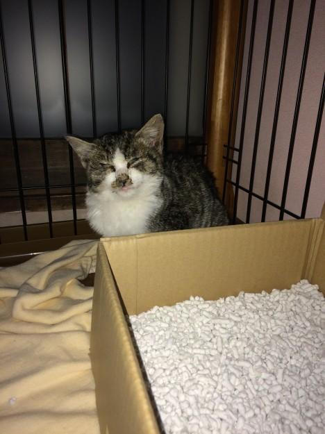 家に帰ってから、改めて子猫の顔を見てみると…鼻水と目やにでグショグショ😱