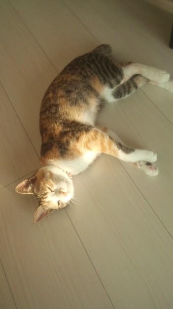 ここたそが、気持ちよさげに寝てる~ みきたそは、洗面所のマットでゆっくり