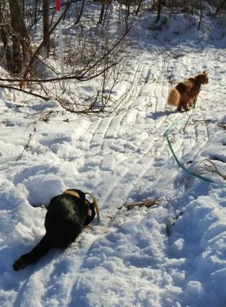 後を付いていくと、キツネの穴があった辺りをウロウロ。