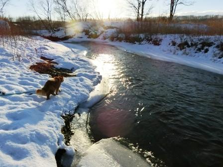 ライア君、家の周囲を少しうろつくと、すぐに土手下に向かって進みだす。