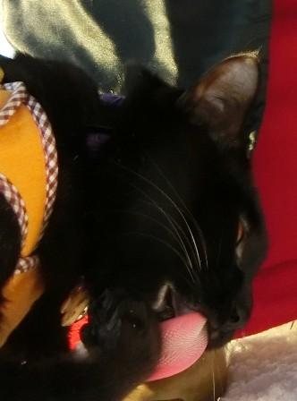 ナイルちゃん、穴が分からないとなると私の足元にやってきて、手をペロペロ。