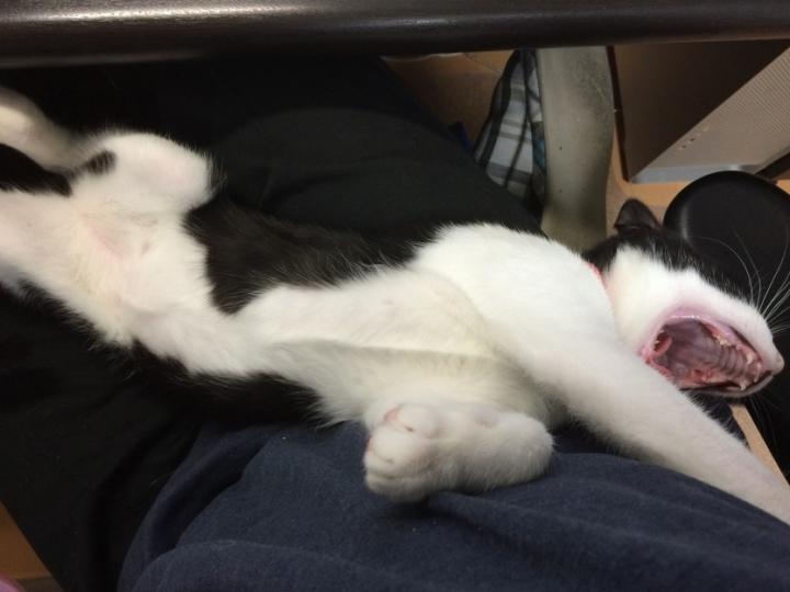 膝の上で邪魔…いやいやお手伝いをしてくれております。