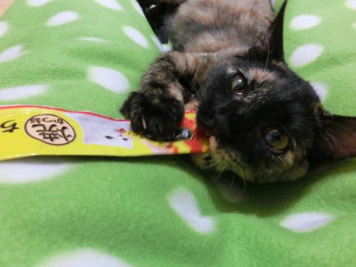 さて今日のウチの侵略者は、緑の布でキレイに撮ってもらってるのに、