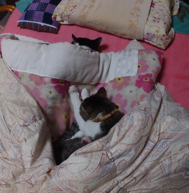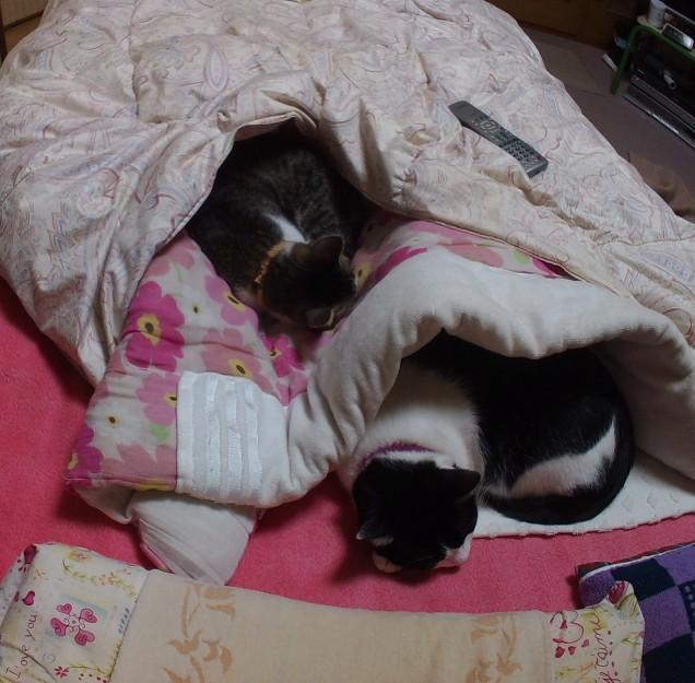 ハチ君と七七保が、自分たちで勝手にもぐり込んでいました。