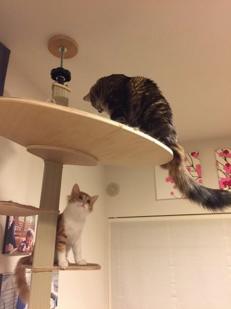 そりゃ、ネコたるもの、一番上でなくちゃ意味がありませんよね、ふたりの気持ちはよく分かります。