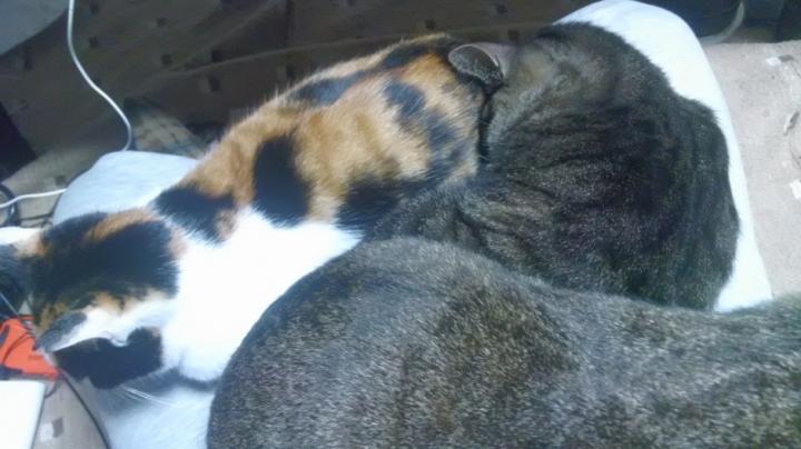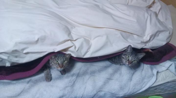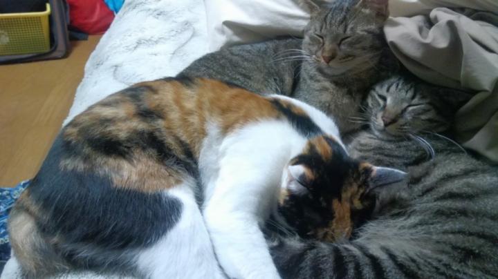 帰宅すると3にゃんがあぐらの上に乗りました。