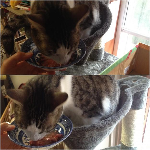 食いしん坊2にゃんがいると Rupiさんに 早く召し上がっていただかないと