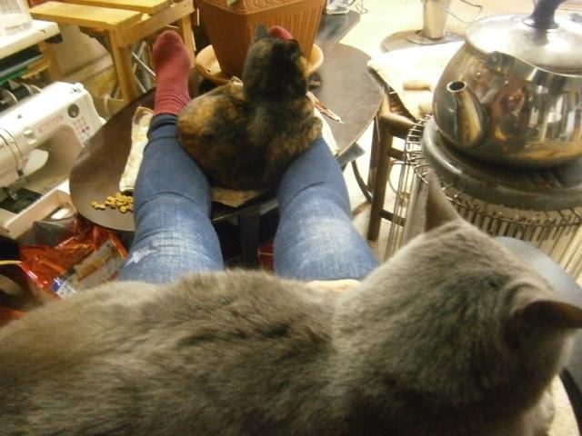 とこんな感じで甘えるニャンズを抱っこや代わる代わるの機嫌とりに大変です