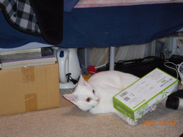ティシュの空き箱に入れて与えると、ピン玉を取り出そうと