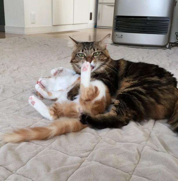 リビちゃんが愛おし過ぎて、つい舐めまわしてしまうムーちゃん。