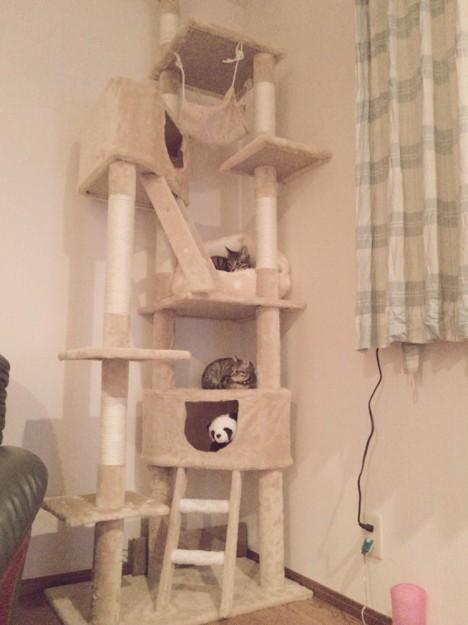 今まではキャットタワーを置いてなくて高い所も行けずちょっとストレス溜まっちゃってたのかたくさん遊んでくれてるのでよかったです(∩^ω^∩)
