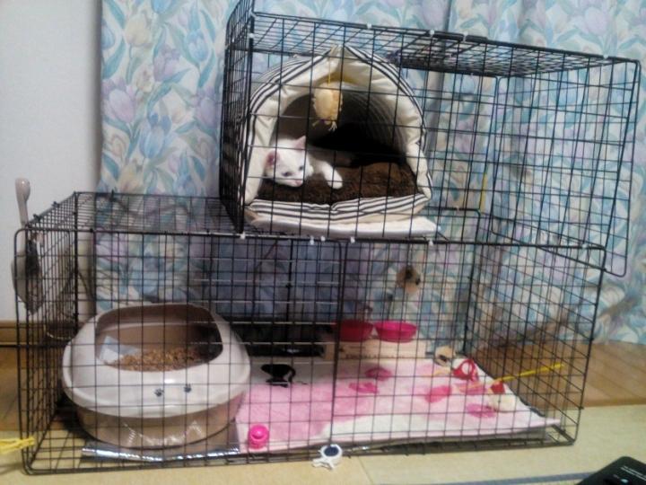 遊び場も広くなったので、昨日は一歩も自分からはドームから出て来なかったのに、自分から出てきて1階で私としばら猫じゃしで遊びましたよ♪