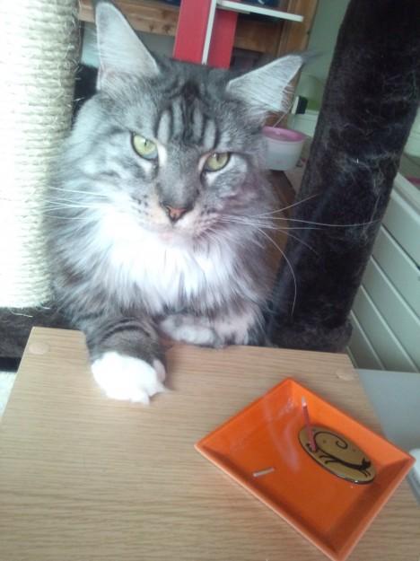 もちろん、直接火を点けるし、灰も落ちるのでニャンズに