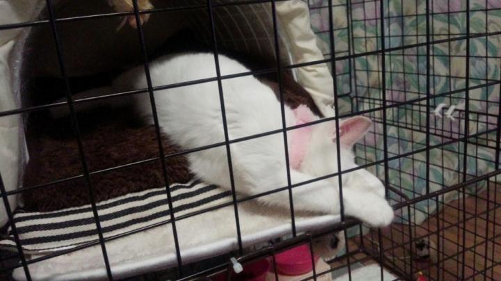 もうすっかり慣れてきて、ゲージの中ではくつろいでます。