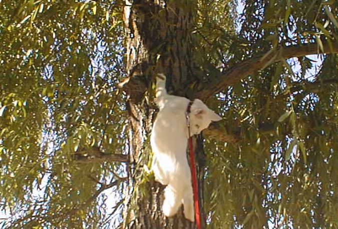 僕は木登りさ。あまり高く登ると降りて来なくなるのでリードで引っ張られてたよ。