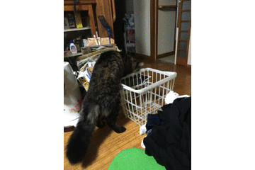 洗濯物カゴが空になったのをみつけた虎太郎は