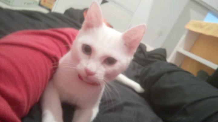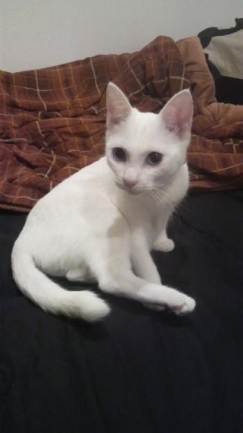 ブルーアイの白猫で、とっても穏やかな感じです。