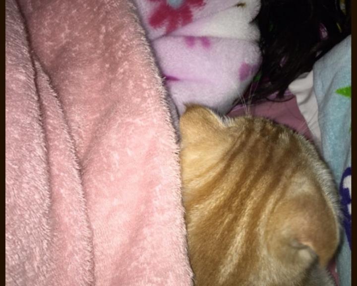 これ、私の胸元や首あたりでやってこのまま寝ちゃうので、私は毎晩ニャンコマフラー。