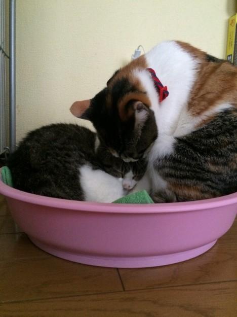 「まぁ〜(⁎⁍̴̛͂▿⁍̴̛͂⁎)*✲゚*。⋆♡ོ 」とニヤニヤ見てたら、今度は一緒にゴロンと寝ていました!